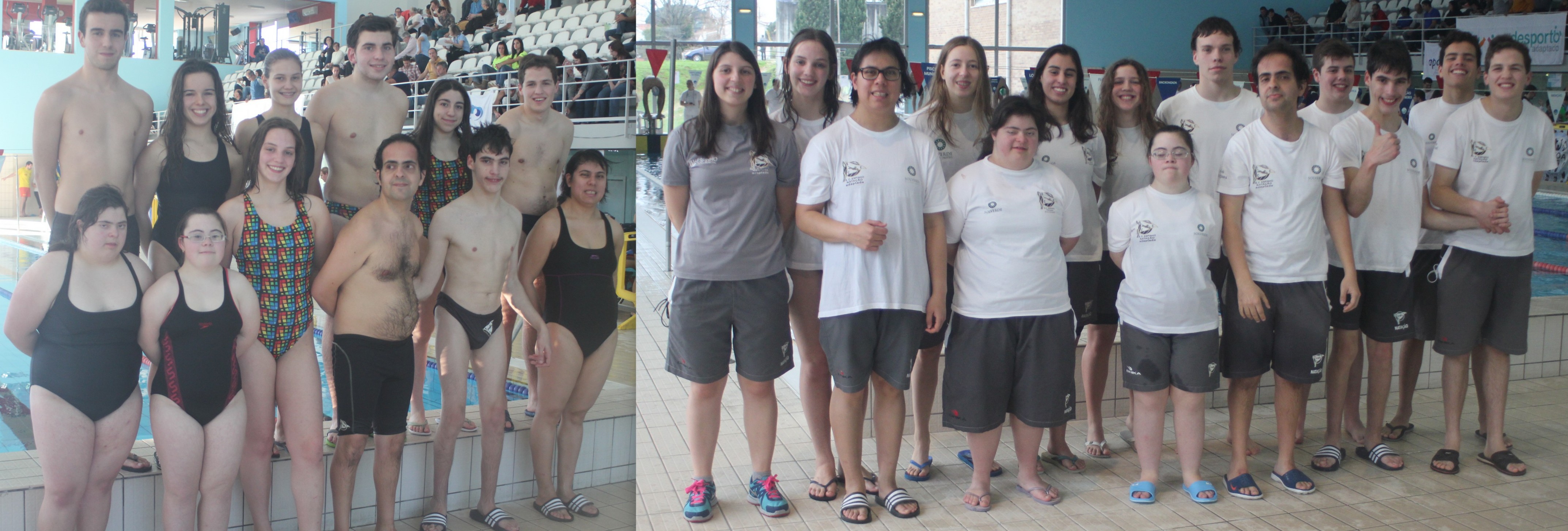 Nas estafetas, que eram constituídas por dois nadadores de natação pura e dois nadadores de natação adaptada obtiveram as seguintes classificações: