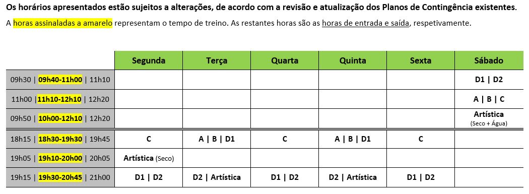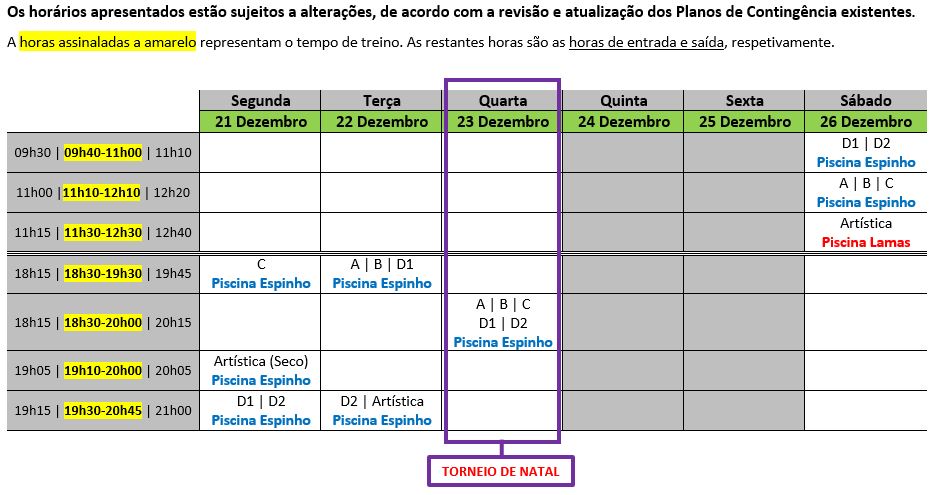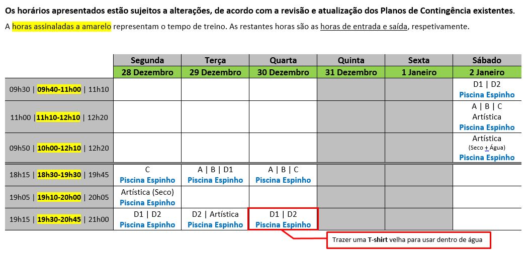 (1) 1Sujeito a convocatória por parte da equipa técnica do SCE Natação.