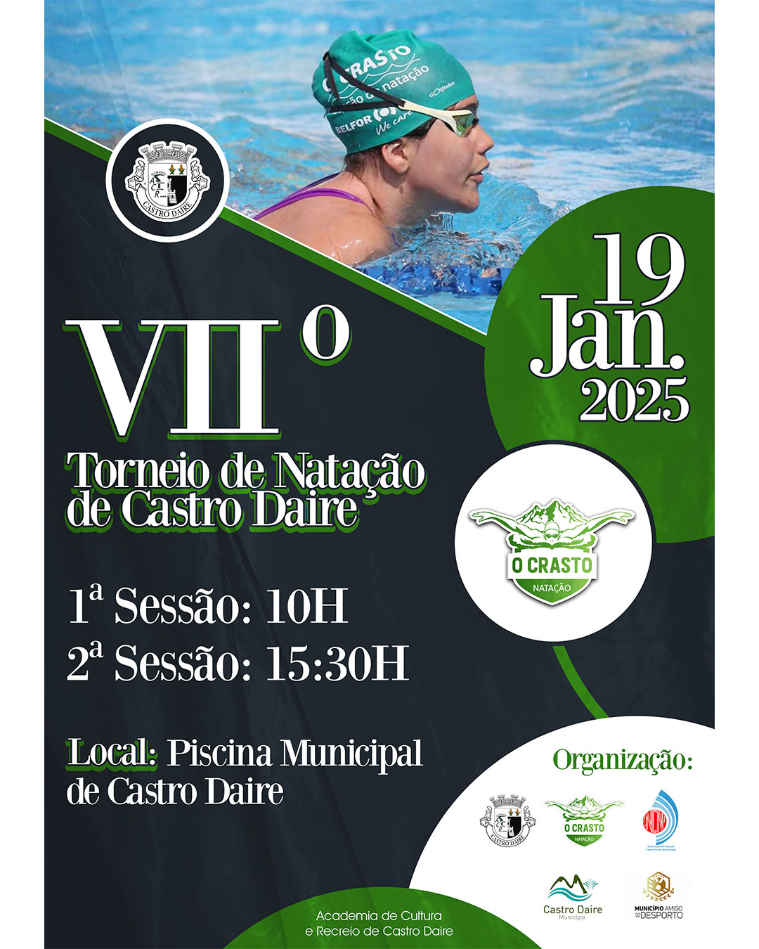 Este torneio é organizado pelo Clube de Natação O Crasto, em parceria com a ANCNP - Associação de Natação do Centro Norte de Portugal e será realizado nas Piscinas Municipais de Castro D'Aire, de manhã e de tarde.
